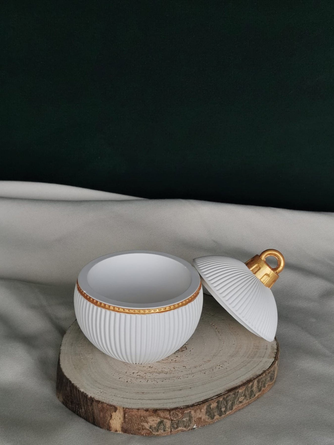 Edle Weihnachtskugel mit Rillen Weiß & Gold | Handgemachte Keramik Deko
